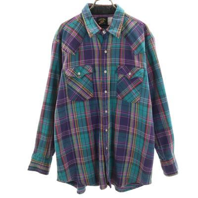 PERMANENT PRESS 70s 80s Made In USA Vintage Check Pattern Long Sleeve Western Shirt Men's Used