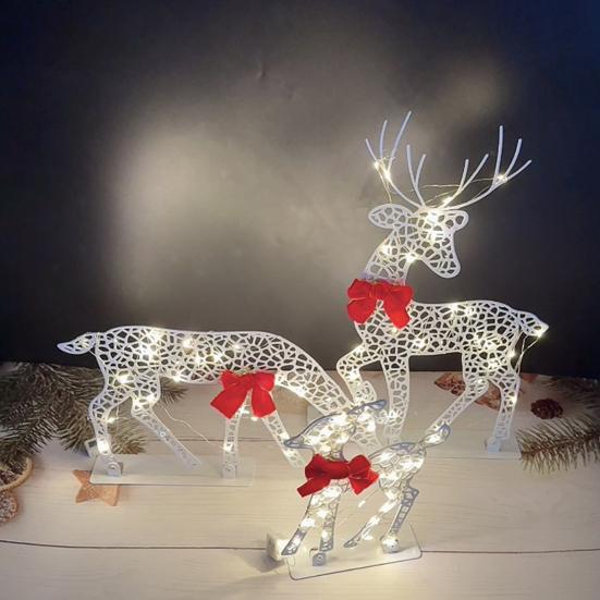 Illuminate both your indoor and outdoor spaces with the built-in LED lights of these reindeer decorations, casting a soft and enchanting glow that enhances the magic of the season. Easy to assemble and store, the 2D design of this reindeer family allows for effortless setup and convenient storage, making it a hassle-free addition to your Christmas display. Add a touch of joy and elegance to your home with these delightful Christmas courtyard decorations.