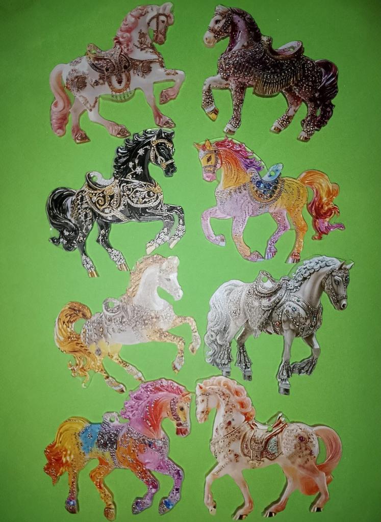 7 pieces of horses arrived instead of 8 pieces and 8 gold-colored ribbons. The horses are neat, flat, there are no glitter.