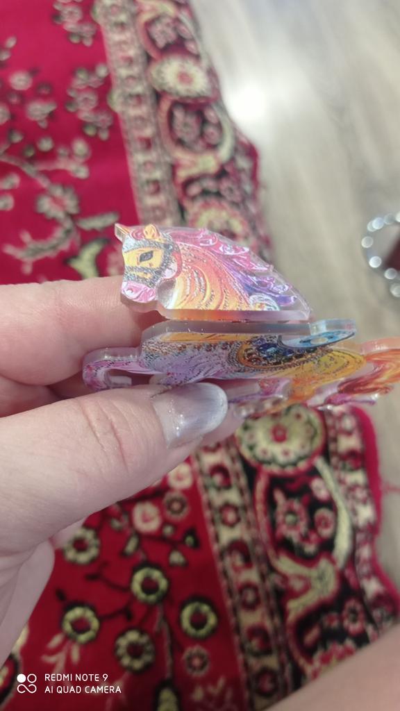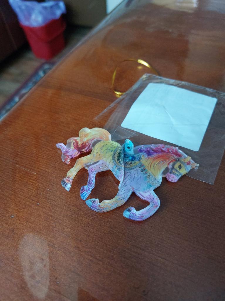 A horse-shaped decoration, beautiful, flat, symbol of the year, will always bring joy, even though it arrived after New Year, a wonderful gift.