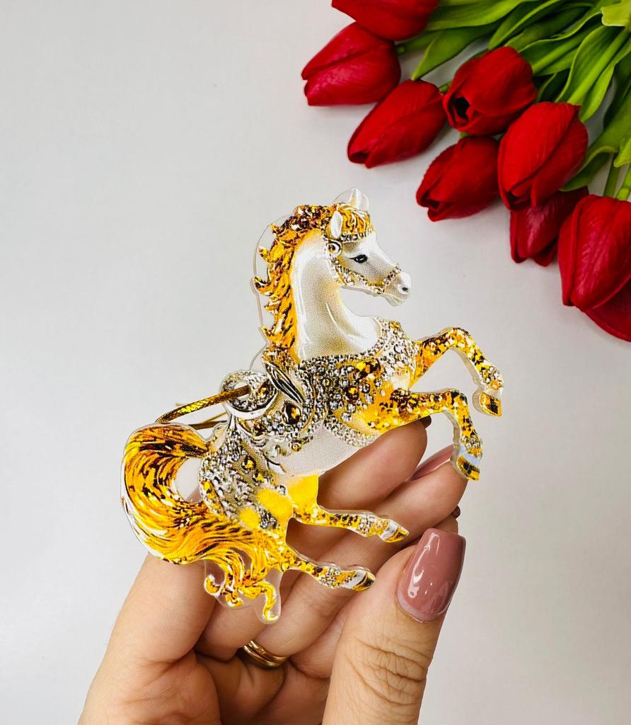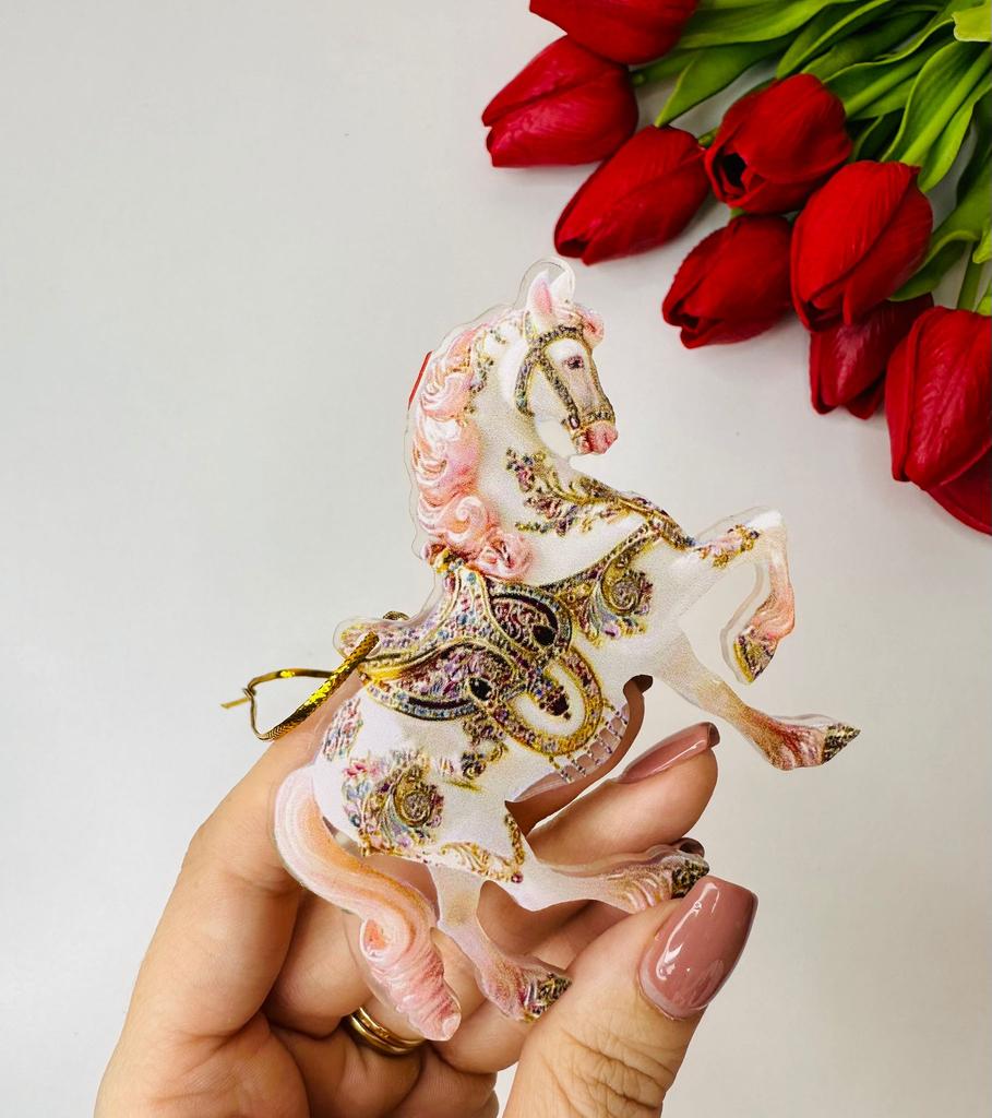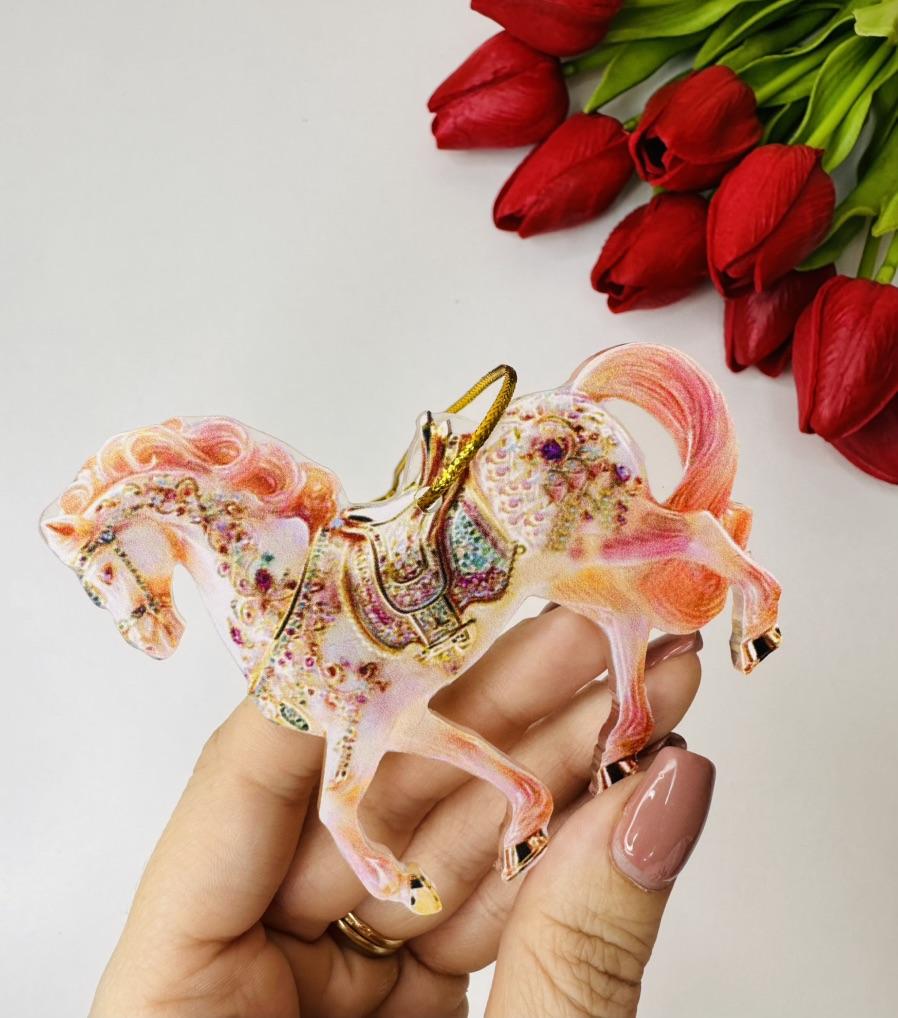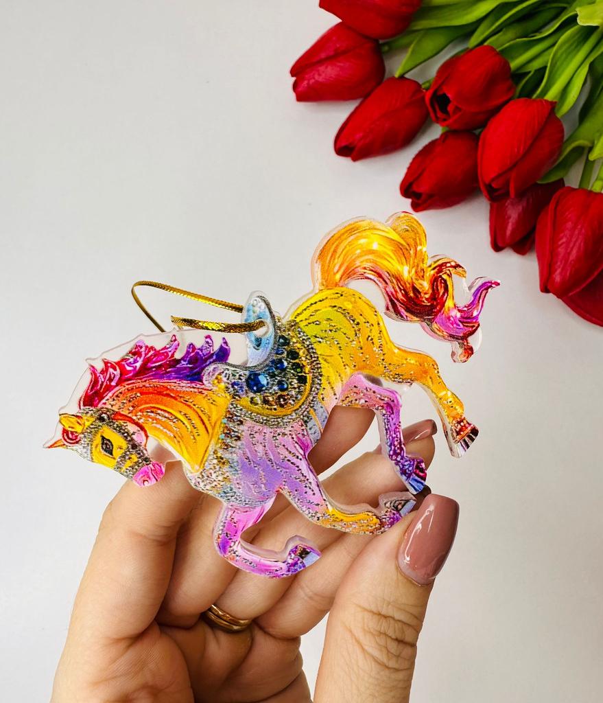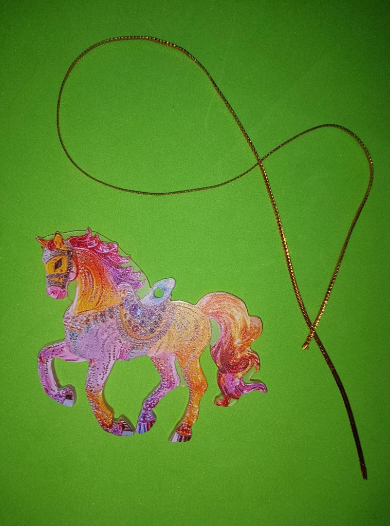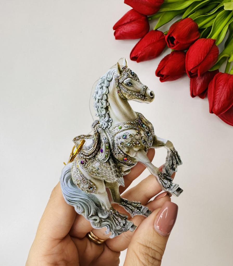 This horse ornament is a stunning addition to the Christmas tree or a unique gift for horse lovers. It is a two-dimensional pendant made of high-quality acrylic, with a magnificent and sparkling horse design inlaid with rhinestones that add a festive and elegant shine.. The compact and lightweight design allows for easy hanging on the tree, on a door, or even as a car ornament. A charming gift for women, girls, or anyone who connects with the worlds of animals, nature, and festive aesthetics. Perfect as a collectible item or as a personal gesture during the holiday season.