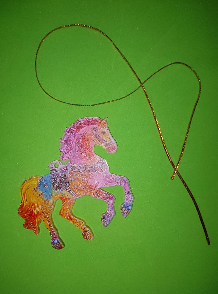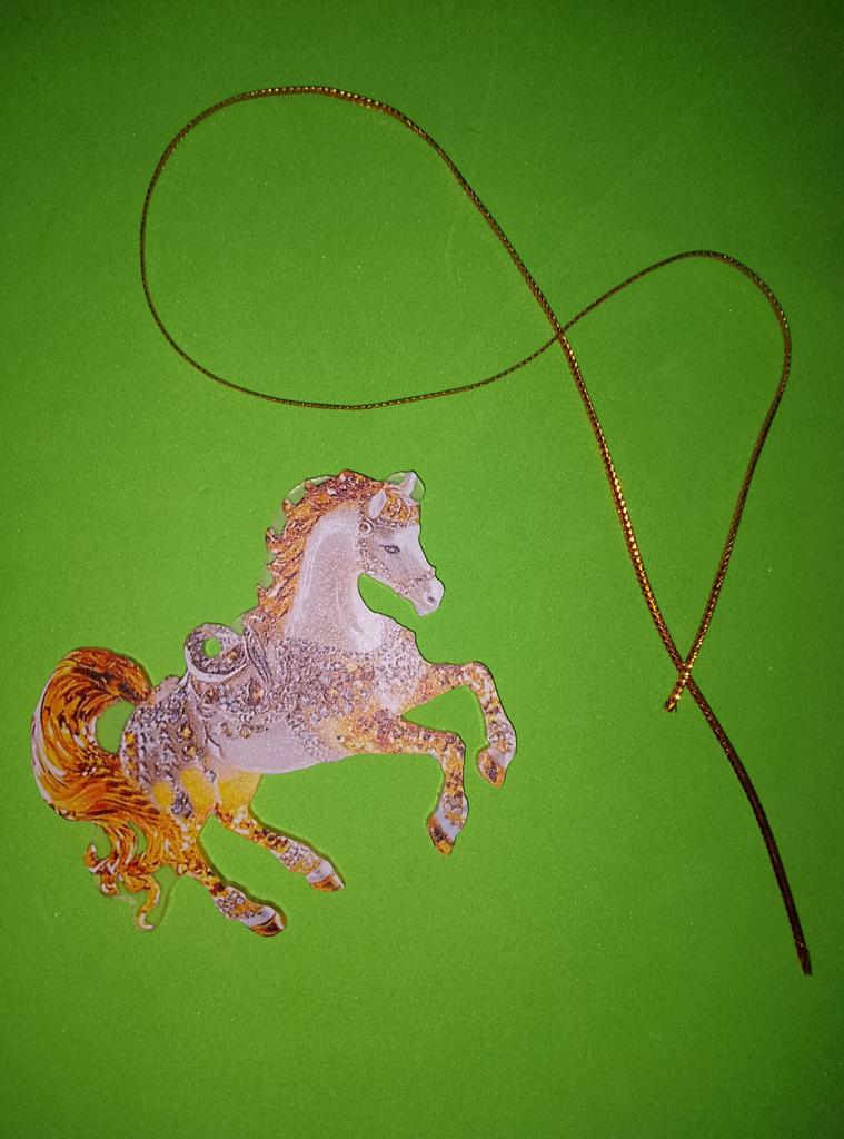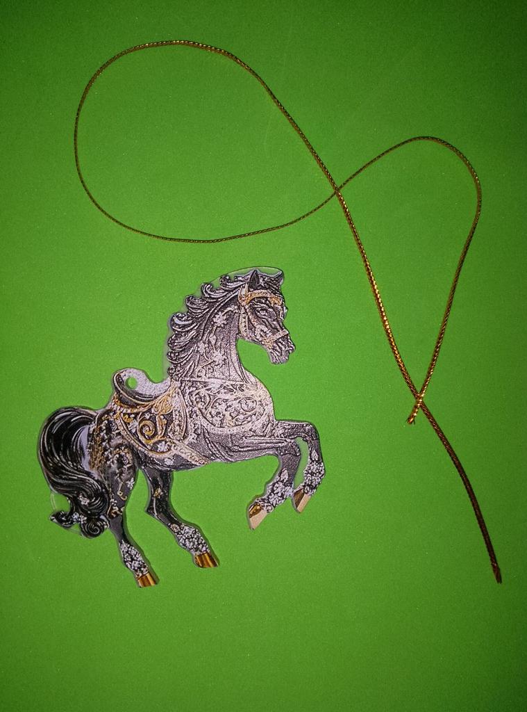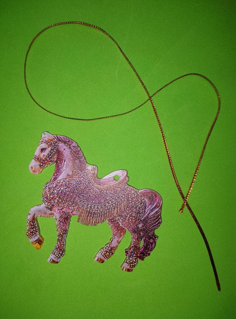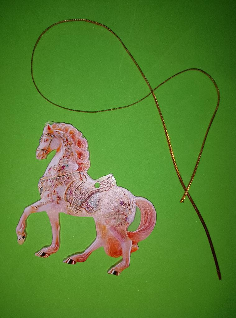 A little horse, like a Christmas tree ornament, only flat.