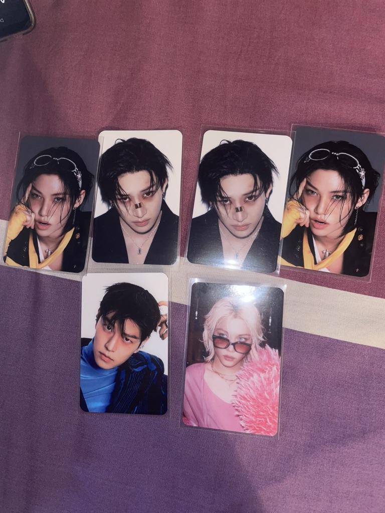 i loveee it! i got my bias hyunjin and im so happy! (i love them all tho) and i didn’t know i would get pre order things too but it’s okay im VERY happy. from the other photo the karma chan, felix and seungmin are in plus and i love them