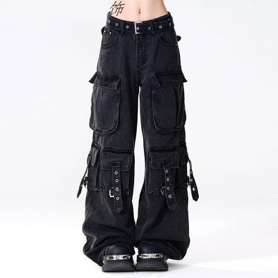 American Street Style Cargo Pants Women Dark Gray Spring Wide Leg Pants Women Loose Y2k Jeans