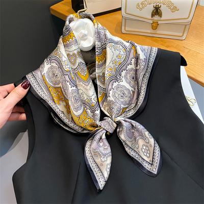 New Vintage Paisley Print Shawl Square Scarf for Women Soft Satin Neckerchief Female Hair Bands Ribbon Headband Bandana