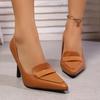 Vintage Pointed Toe Super High Heel Pumps Women 2025 Summer Brown Slip On Wrinkled Decorative Loafers Elegant Office Shoes Women