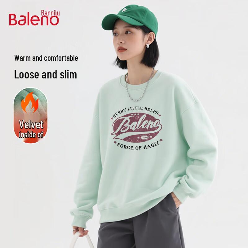 Baleno Women's Fleece-Lined Retro Letter Crew Neck Sweatshirt