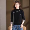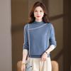 Women's Loose Fit Mock Neck Contrast Knit Pullover Sweater