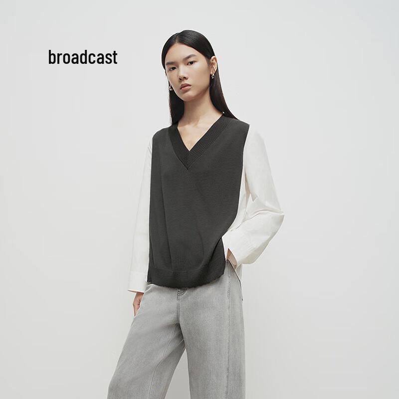 broadcast Women's Faux Two-Piece Patchwork V-Neck Sweater