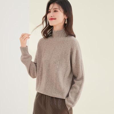 Women's Cashmere Sweater: Semi-High Neck Cable Knit Loose Pullover for Autumn/Winter