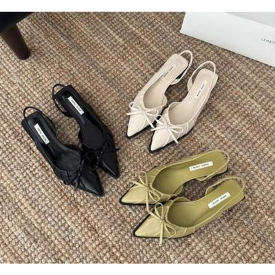Summer Women's Bow Cover Toe Sandals Elegant Shallow Slip On Shoes Comfort Low Heel Dress Street Style Shoes