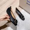 Shallow Mouth Single Shoes Women's 2024 New Retro Buckle Low Heel Flat Shoes Square Headed Soft Leather Mary Jane Shoes