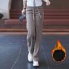 Winter Women Chic High Waisted Pants Lady Korean Style Versatile Solid Trousers Female Thermal Thicken Straight Leg Slacks