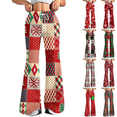 Women's Fashion Loose Drawstring Waist Christmas Printed Casual Sports Pants Casual Flared Pants