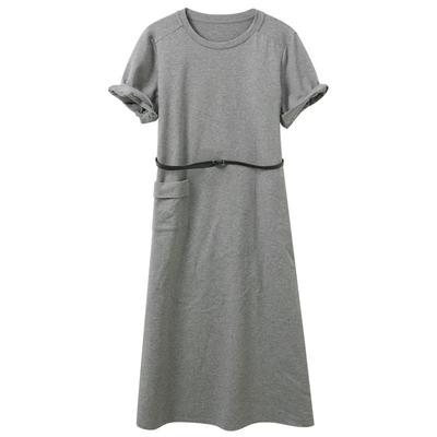 Women's Dress Short-sleeved Round Neck Solid Color Casual and Elegant Knee-length Dress