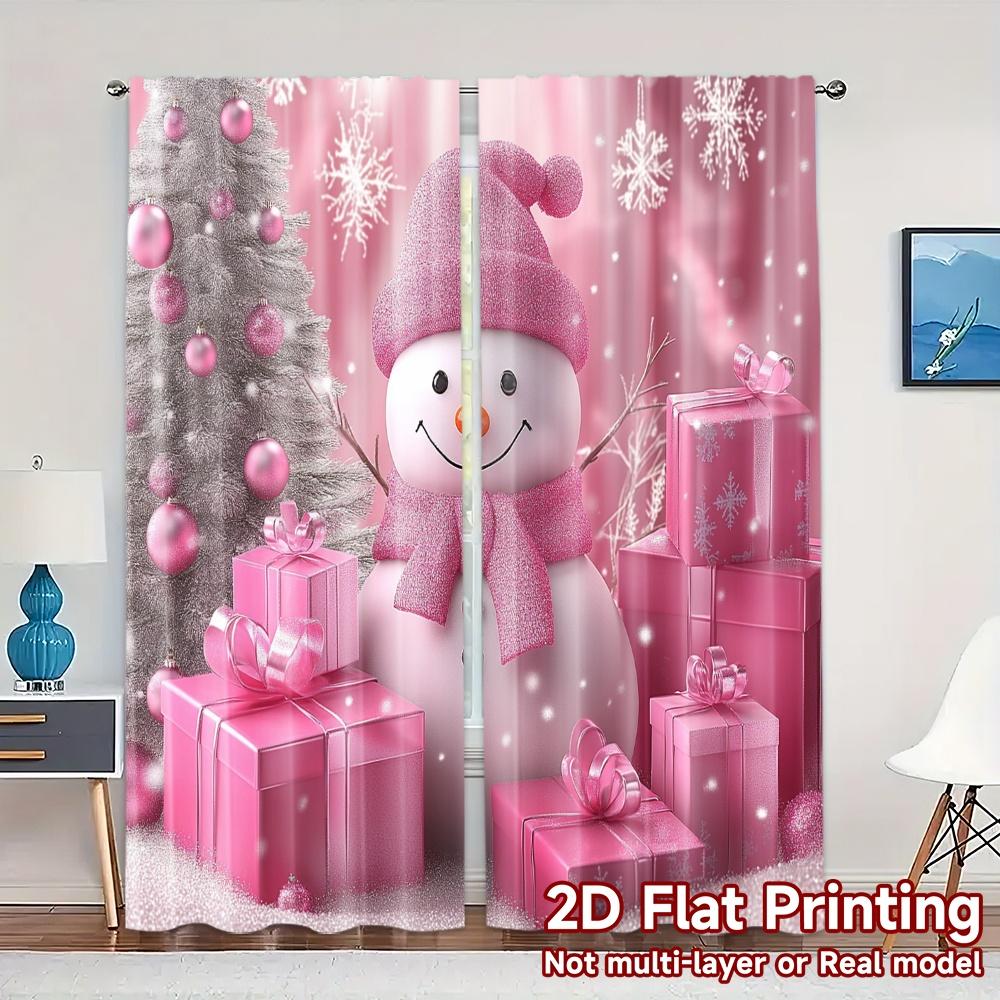 2pcs,Curtains Cute Pink Snowman Gifts (2) Popular Window Curtain Semi-Sheer Curtains Art Deco Festive Use for Bedroom Living