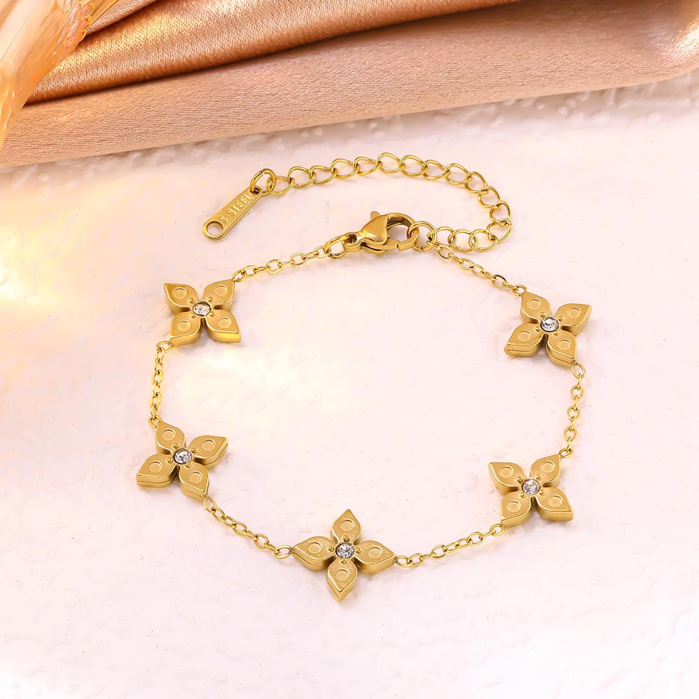 Elegant Four-Leaf Clover Titanium Bracelet with Micro-Paved Diamonds - Light Luxury Women's Floral Jewelry