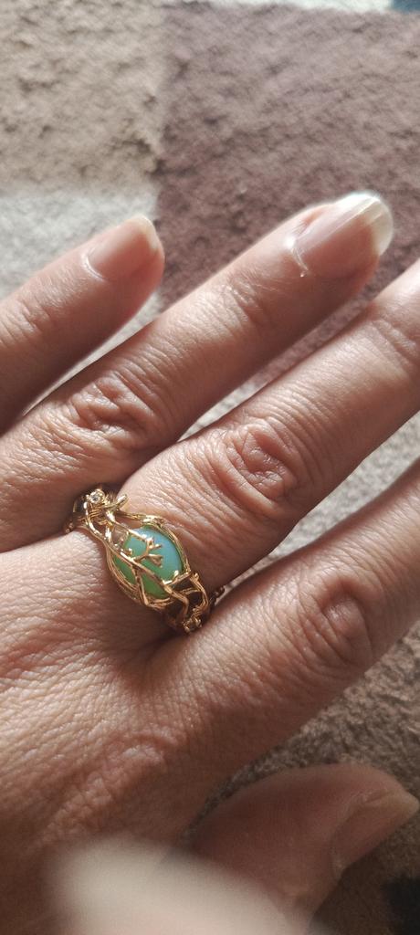 Retro Jade Inlay Malachite Oval Cabochon Magic Ring for Women