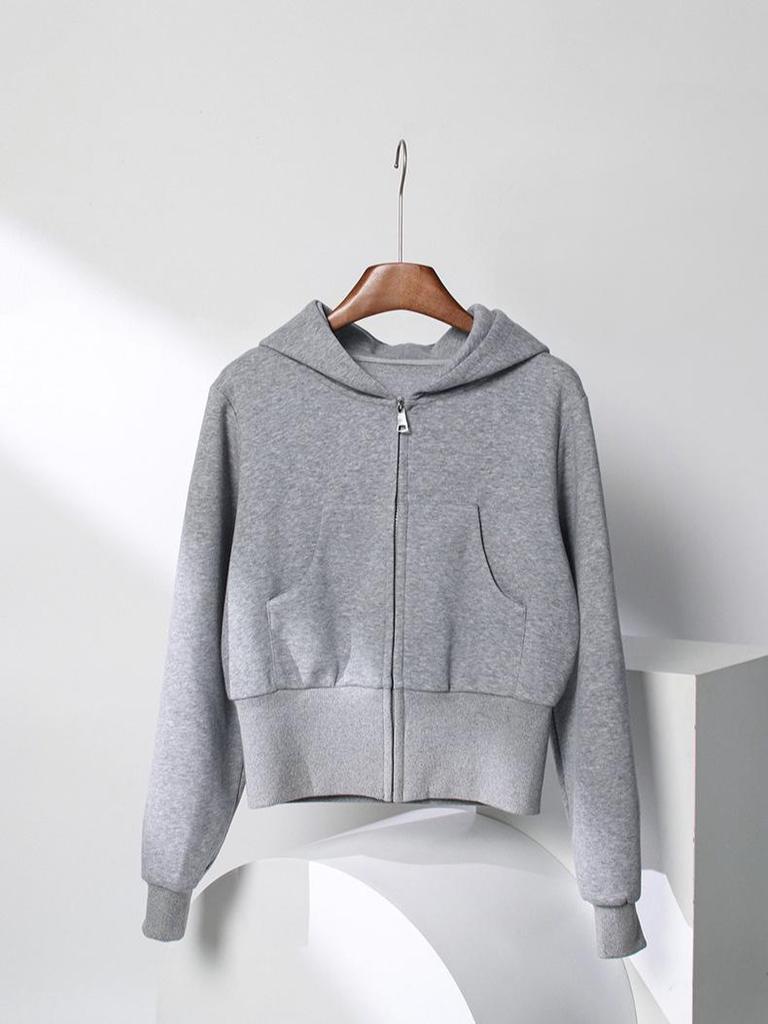 Women's Slim Gray Jacket - 2025 New Spring/Autumn Korean Style Waist-Hugging Sweatshirt