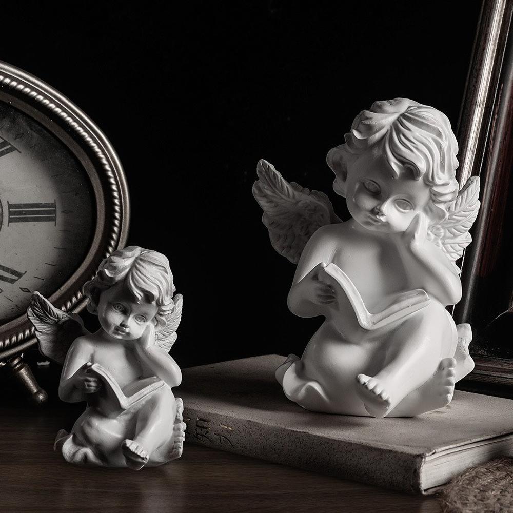 Hand-Painted Reading Angel Resin Statue - Vintage Book Decor, Home Altar Figurine, Collectible Gift, Photography Prop