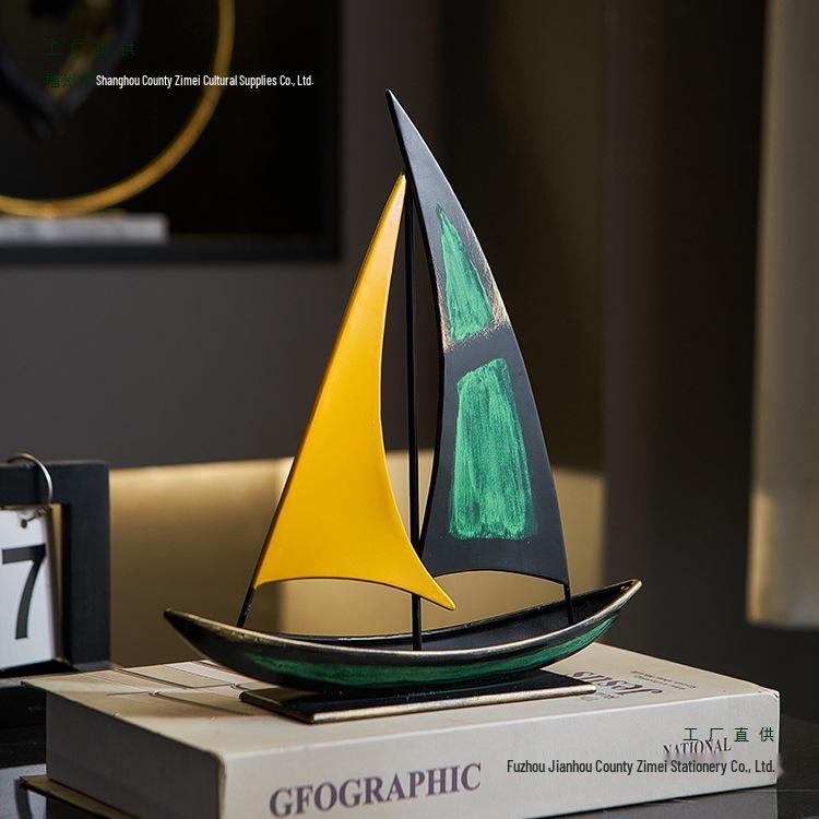 Retro Sailboat Model Ornament: Luxurious Decor for Living Room, Office, or Cabinet