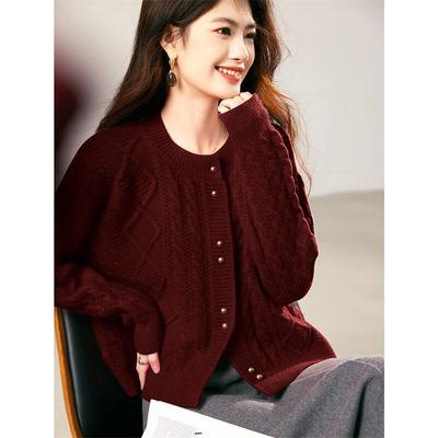 Solid Color Twist Crew Neck Knitted Cardigan Jacket Women's New Autumn Age-reducing Loose Long-sleeved Top