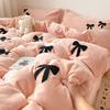 Bow High Gram Weight Thickened Milk Fleece Towel Embroidery Four-Piece Set Bed Sheet Quilt Cover Bedding Three-Piece Set