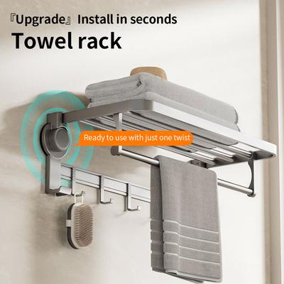 Bathroom Towel Rack No Punching Bathroom Storage Rack Wall-mounted Foldable Bath Towel Storage Rack