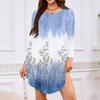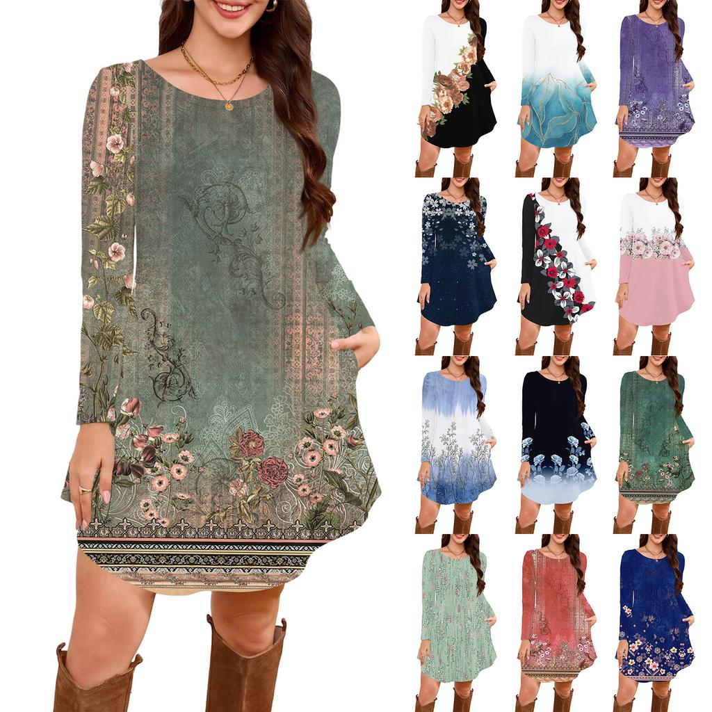 Women's Long-sleeved T-shirt Dress With Round Neck, Knee-length, Loose Fit, Casual And Pockets
