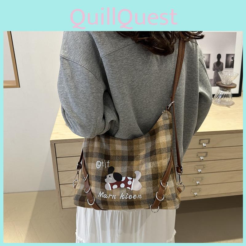 This urban minimalist cotton tote bag features a soft, flexible structure with a water-bag shape and a stylish plaid pattern. Made of durable cotton, it measures approximately 29*26.5*9.5cm, ideal for daily commuting and casual outings. The zippered opening and internal phone pocket support secure, organized storage. Wipe clean with a damp cloth to maintain its appearance.