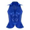 Women Stylish Solid Color Vest Lapel Design Sleeveless Sparkling Sequin Detail Party Top Nightclub Outfit