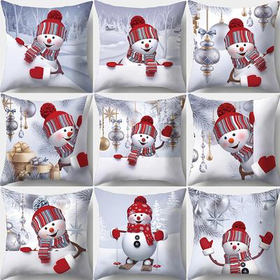 Cute Cartoon Snowman Santa Claus Printed Pattern Cushion Cover for Home Living Room Sofa Bedroom Decoration Pillowcase