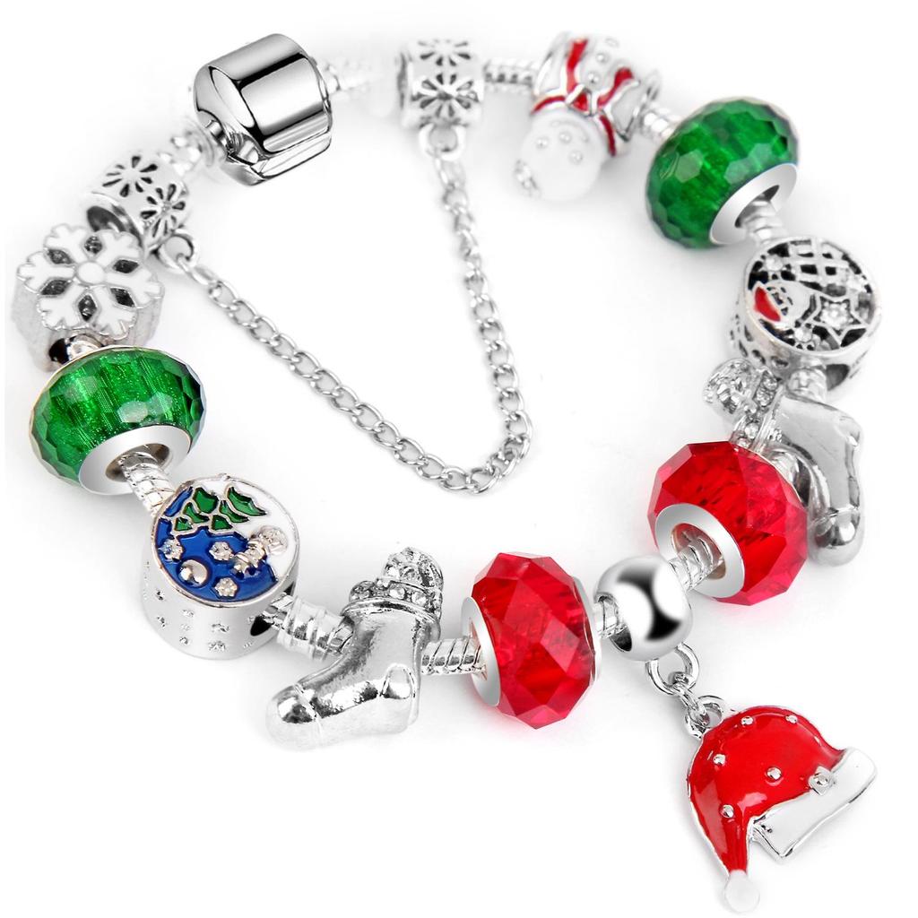 Vintage Christmas Beaded Bracelet for Women with European and American Influences, Hollowed-out Design, Christmas Hat Beads, Pandora-Style Jewelry