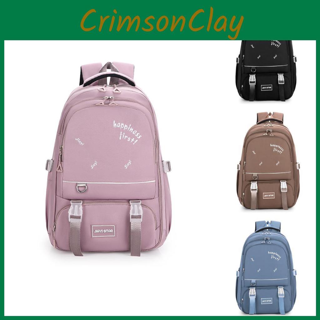 Color Simple Solid Letter Print Student Casual Backpack For School Day Use