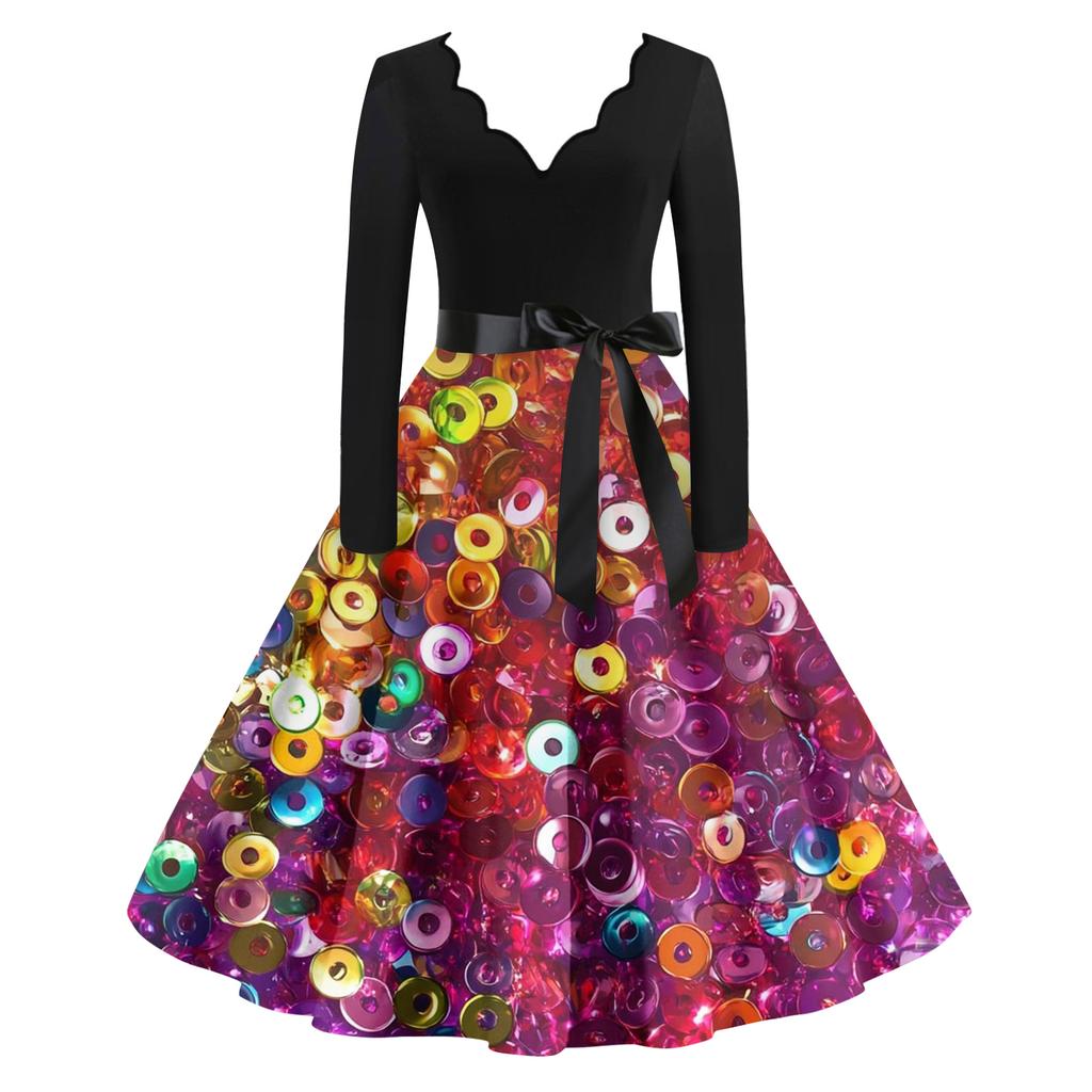 Women's Casual Fashion V Neck Long Sleeve Printed Vintage Long Dress