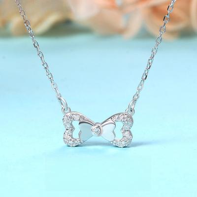 Bow Necklace Women'S Light Luxury Design Simple Micro-Inlaid Pendant Collarbone Chain Necklace