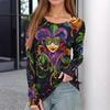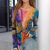 Women's Winter Slim Bottom T-shirt Fashion Casual Printing Round Neck Pullover Long Sleeve Top