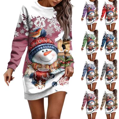 Long Sleeve Dress For Women Casual Christmas Printed Pullover Hip Pack Dress Sweater Dress