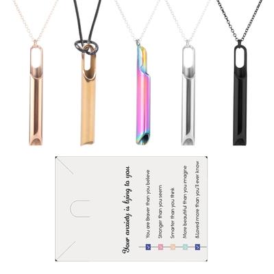 Meditation Mindfulness Breathing Necklace Stainless Steel Whistle Pendant Necklaces Breathing Exercise for Relaxation