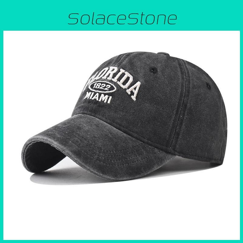 Florida Washed Cotton Baseball Cap With Embroidered Letter Design For Outdoor Sun Protection