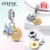 Exquisite Copper Blue Series Butterfly Beads Pendant Fit Bangle Charms Bracelet Diy Women Original Jewelry Gifts