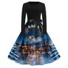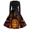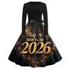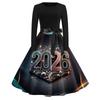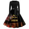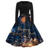 Women's Casual Fashion Round Neck Long Sleeve New Year Printed Retro Dress