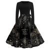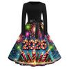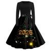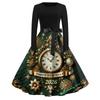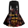 Women's Casual Fashion Round Neck Long Sleeve New Year Printed Retro Dress