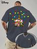Disney Mickey Christmas Cartoon T-shirt Men Fashion Letter Cartoon Design Breathable and Lightweight Casual Short Sleeve T-shirt