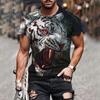 Mens 3D Tiger Print Short Sleeve Crew Neck T-Shirt Breathable Medium Stretch Casual Fashion Tee for OutdoorParty Weekend Wear