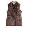This women's vest is crafted from high-quality polyester, offering a soft, lightweight, and breathable feel that is gentle on the skin, ideal for autumn and winter wear. Featuring a minimalist design, it combines casual fashion with practicality, highlighted by a drawstring waist for an adjustable and flattering fit.