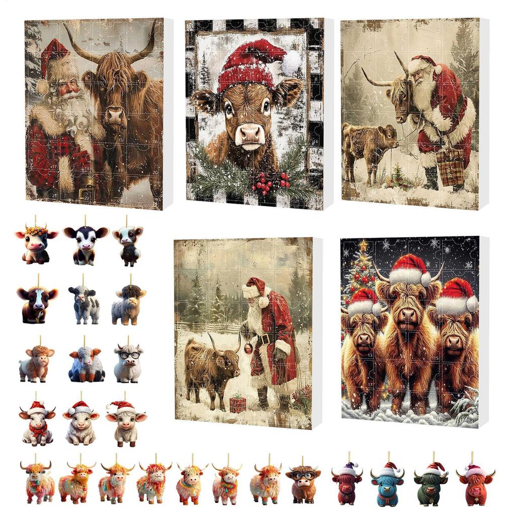 Christmas 2D Acrylic Ornaments 24-Day Countdown Calendar Animal Charm Tree Hanging Pendant 2026 New Year Holidays Kids Gifts