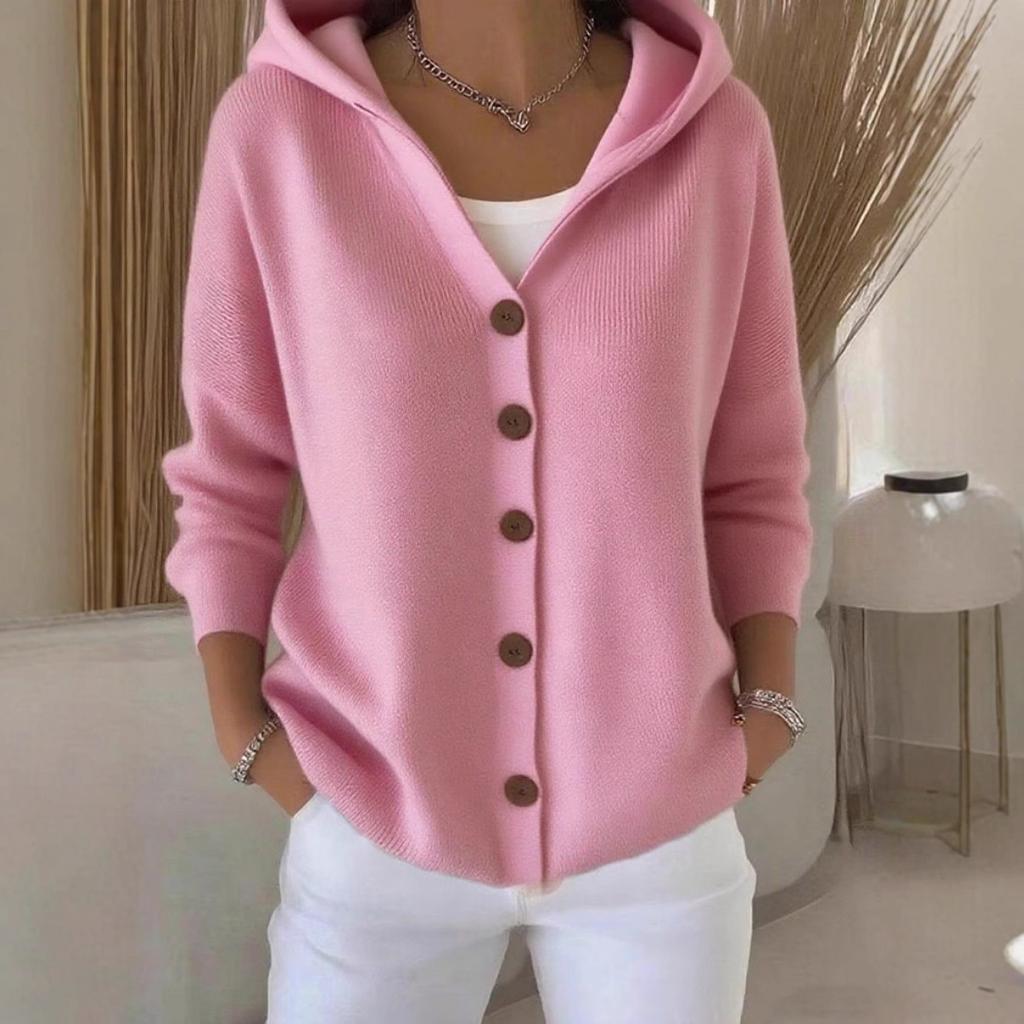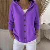 Button-knitted Hooded Sweater Cardigan, New Solid-color Casual and Fashionable Women's Wear for Autumn and Winter