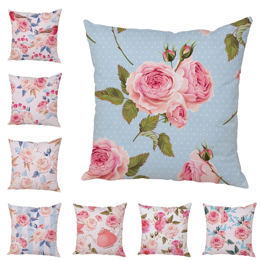 Nordic Style Rose Flower and Birds Pillow Case Cushion Cover for Car Peach Skin Decor Flower Plant Animal Throw Pillowcase