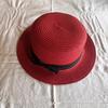 This stylish summer straw hat features a flat crown and short brim, crafted from breathable woven straw to provide effective sun protection. It measures approximately 14 inches in diameter, offering a comfortable fit. Ideal for beach outings, outdoor festivals, or casual strolls, it enhances vintage-inspired looks while shielding from UV rays. Wipe clean with a damp cloth to maintain its natural texture.